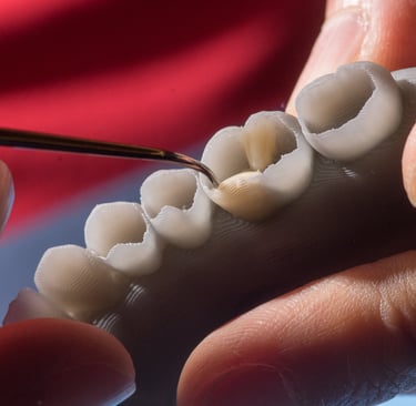 Confección de una restauración proximal de una pieza 46 oclusomesial con todo el protocolo desde la aislación, colocación del sistema de matriz, hasta la restauración con la morfología acorde, (técnica dentina y esmalte cúspide a cúspide) en modelo de ivorina. Confección de molares y premolares superiores con la técnica de dos capas, (dentina-esmalte). Confección de molares y premolares inferiores con la técnica de dos capas, (dentina única esmalte único) en modelo impreso.